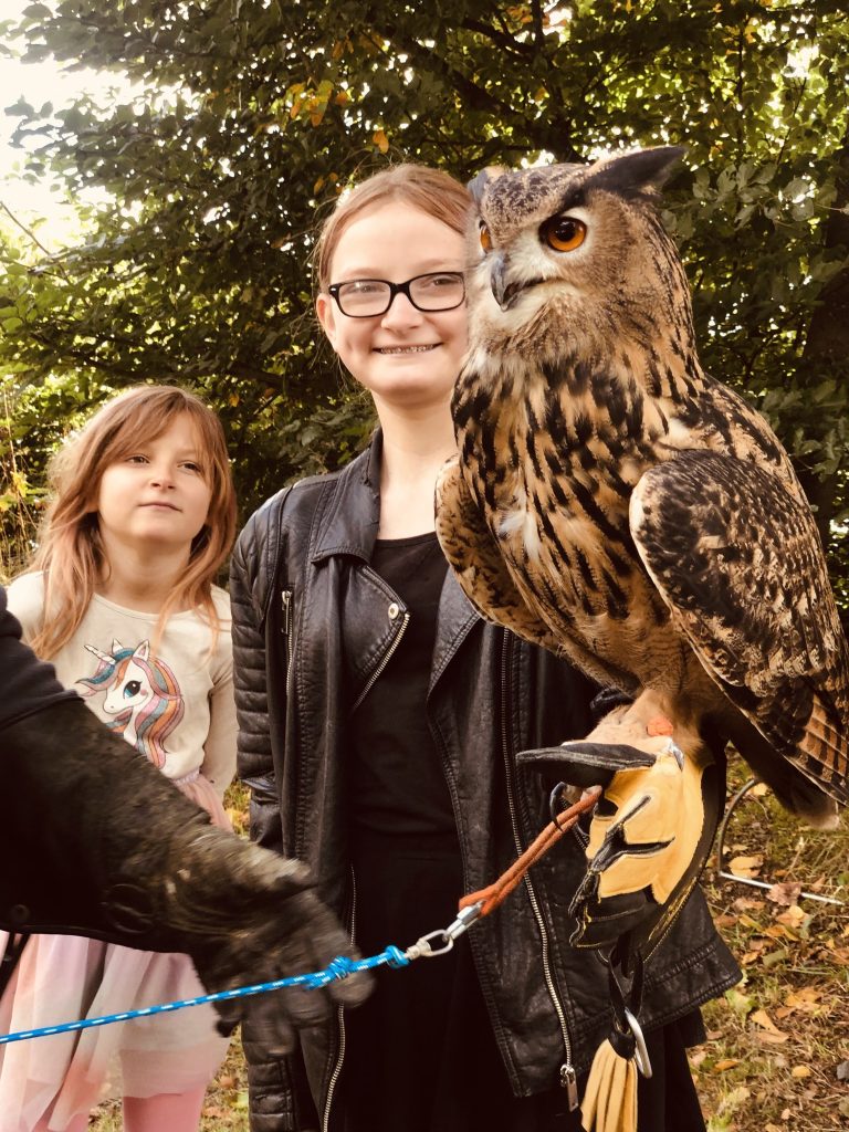 Neu im Programm war ein Sägewettbewerb. Solche Wettstreite werden meist mit einer Trummsäge durchgeführt, bei denen es zuweilen auch schon mal etwas deftiger zugeht. Thomas Wehren hatte sich eine Variante ausgedacht, bei der auch Kinder mit Unterstützung von Vater oder Mutter mitmachen konnten. Von einem Stamm musste eine Scheibe abgeschnitten werden, die vom Gewicht her möglichst nahe an eine Musterscheibe herankam. Die fünf Teilnehmer, die dem Musterstück am nächsten kamen, konnten als Preis eine geschnitzte Holzfigur mit nach Hause nehmen. Seine Premiere beim Walderlebnistag erlebte auch Revierförster Olaf van de Geest, der über Rettung im Wald informierte. Kinderbuchautorin Jeannine Dellerè-Fischer hatte die neueste Geschichte von Hörnchen im Gepäck, der die Kinder gespannt lauschten. Viel Interesse fanden auch die Vorführungen von Waldmeisterin Monika Schmitz die unter anderem zeigte, wie man ohne Streichhölzer oder Feuerzeug ein Feuer entfachen kann. Auch der Stand von Frank Dippel mit seinen Greifvögeln war ständig umlagert. Mit Emma, einem Uhu, der ein Terzel, also eine männliche Eule ist, aber irrtümlich einen weiblichen Vornamen erhielt, auf der Hand, wurden viele Erinnerungsfotos gemacht. Etwas abseits vom eigentlichen Waldfestplatz wartete Horst Finder mit seinen Rückpferden auf die Gäste. Die sanften Riesen Balou und Ilvie zogen Kinder auf einem Teppich über die Wiese oder dienten als Reittiere. Und im alten Steinbruch zeigte Guido Bartz den richtigen Umgang mit Pfeil und Bogen.
