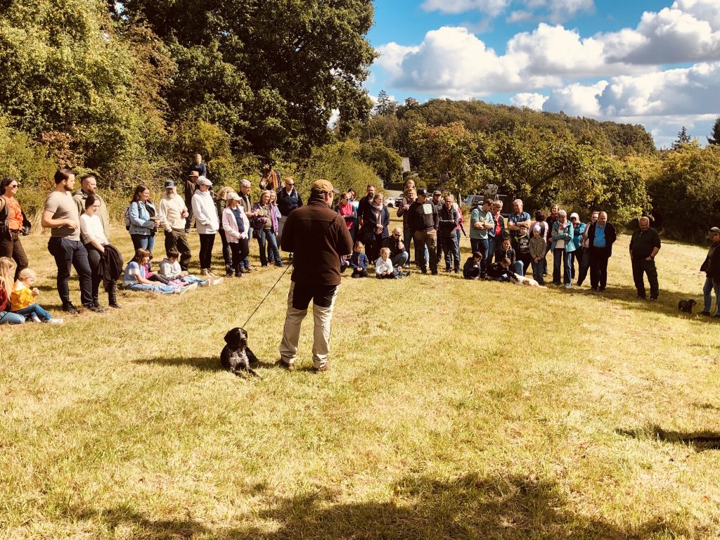 Einen großen Anteil an der außergewöhnlichen Vielgestaltigkeit des Walderlebnistages haben die Jäger aus dem Kreis Ahrweiler. Birgitt Gross und das Team von der Rollenden Waldschule präsentierten Präparate heimischer Waldtiere und Vögel. Außerdem konnte man bei ihnen mit einem Drillbohrer kleine Löcher in eine Holzscheibe bohren und sich so eine Waldmedaille gestalten oder Jutebeutel bedrucken. Hannes Fritz und Katharina Dillmann stellten Jagdhunde verschiedener Rassen vor, die anschließend verschiedene Übungen zeigten. Die Jagdhornbläsergruppe des Hegeringes Kempenich um Patrick Winter und Thomas Bläser unterhielten die Gäste den ganzen Nachmittag über an verschieden Plätzen mit ihren Signalen. Erstmals in Kempenich dabei war die Wildtierrettung Eifel. Die Gruppe um Patrick Terstegen hat es sich zur Aufgabe gemacht mit Hilfe von Drohnen und Wärmebildtechnik Landwirte und Jäger bei der Suche, sowie der Rettung von Jungwild aus Feldern und Wiesen zu unterstützen und demonstrierte, wie man dabei vorgeht.